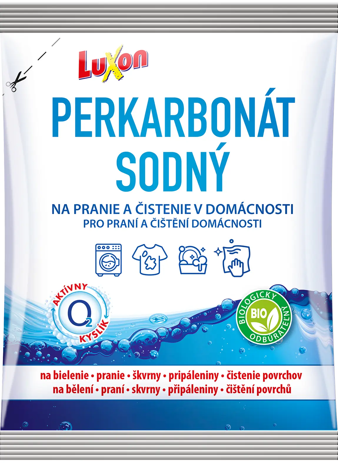 Namáčení: Rozpusťte 1–2 lžíce perkarbonátu v 10 litrech horké vody a nechte stálobarevné prádlo namočené přes noc. Tento postup je účinný při odstraňování odolných skvrn, jako je pot, mastnota, víno či tráva.